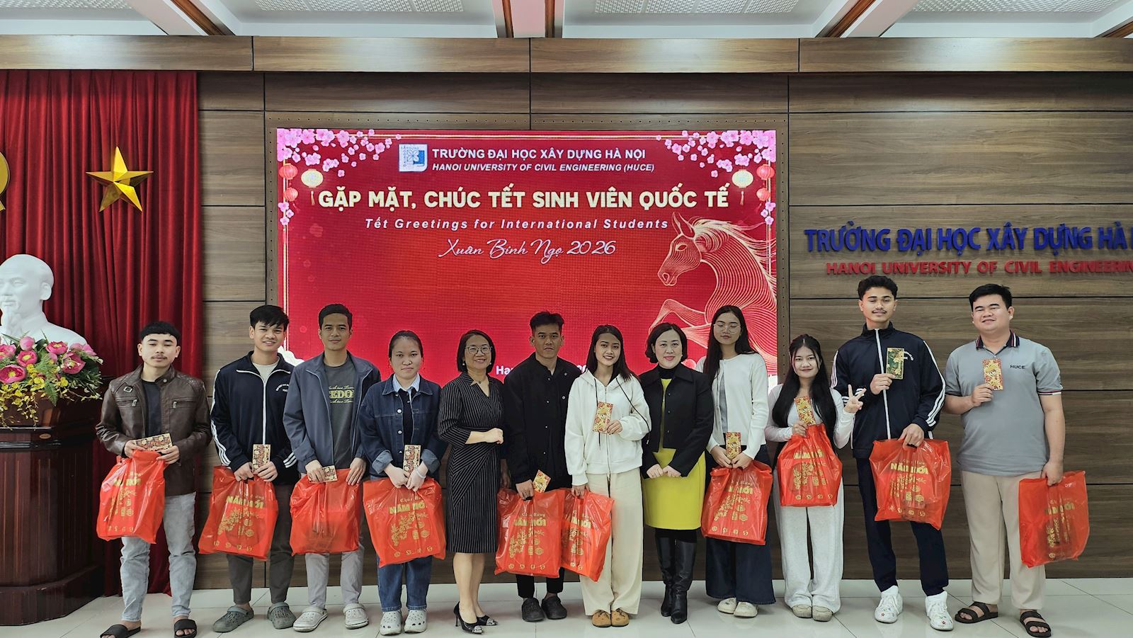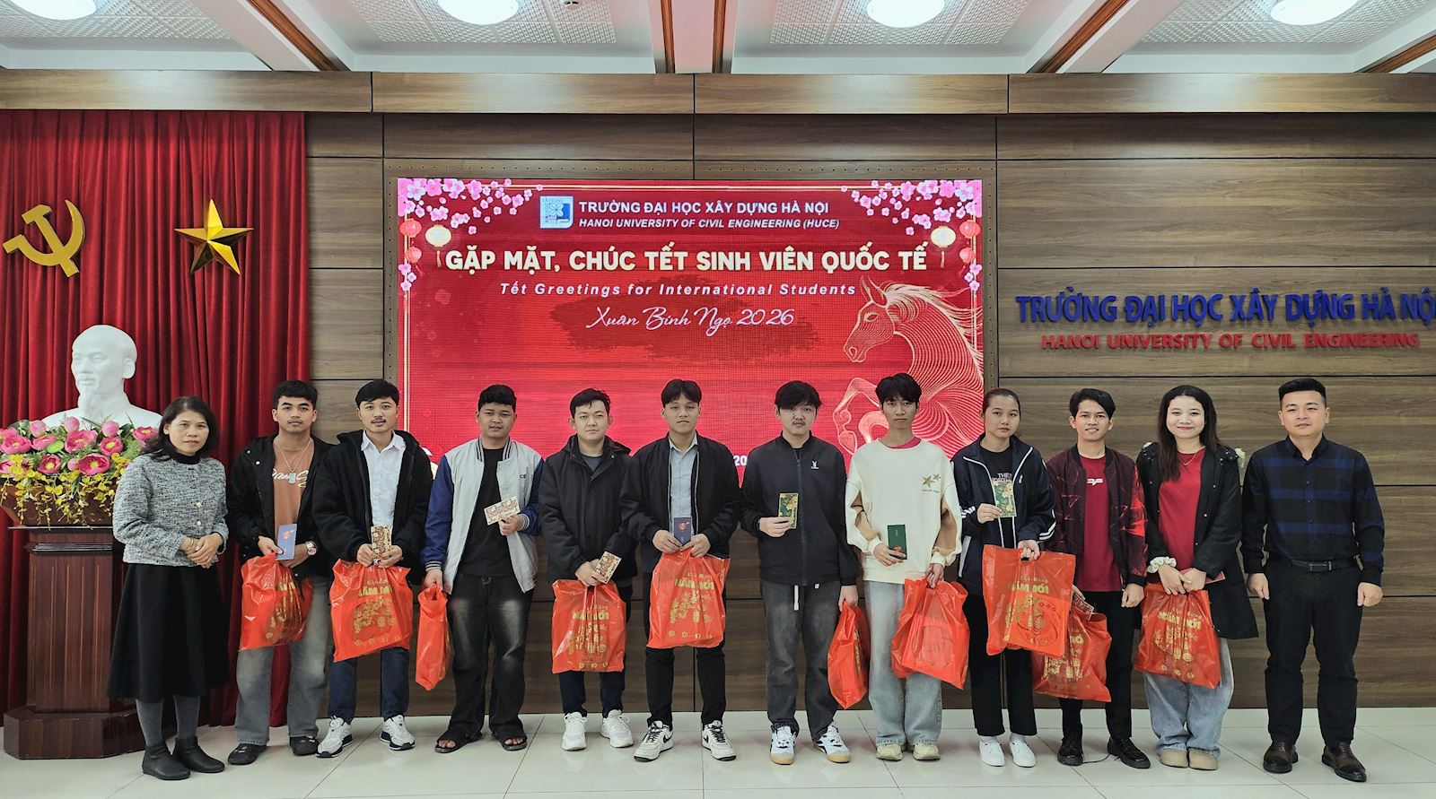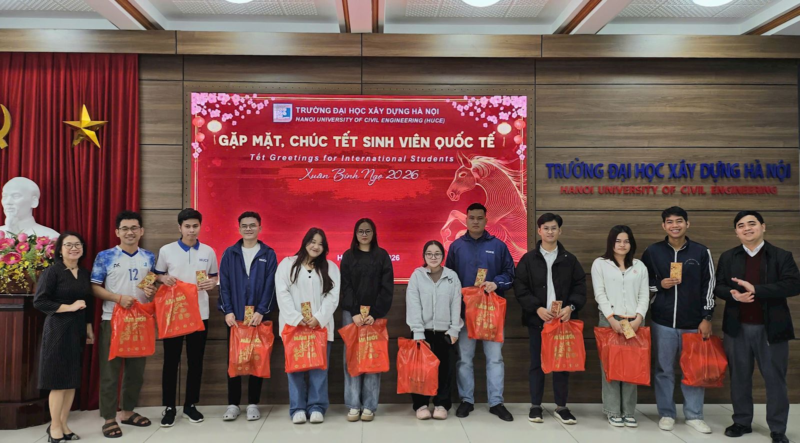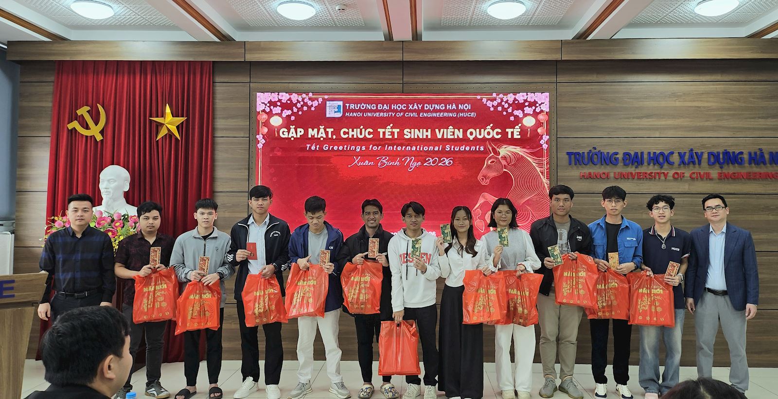 In the festive atmosphere leading up to Tet (Lunar New Year), under the close attention and guidance of HUCE’s Party Committee and Rector Board, the Faculty of International Education (FIE) organized a Lunar New Year's meeting for international students who are currently pursueing programs at HUCE, on the occasion of the New Year 2026 on the morning of February 5th, 2026.