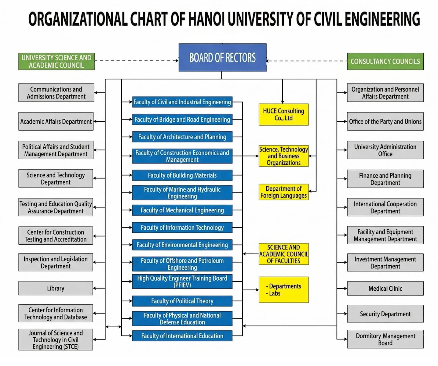 Currently, Hanoi University of Civil Engineering is organized as follows: